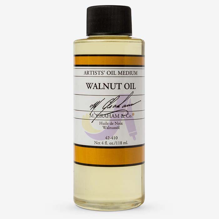 روغن گردو یکی از بهترین میدوم های رنگ روغن برای رنگهای روشن است، زیرا نسبت به روغن بزرک کمتر زرد میشود و رنگ نهایی را شفافتر نگه میدارد. این روغن برای هنرمندانی که به دنبال اجرای لطیف، نرم و دقیقی هستند بسیار مناسب است. از آنجا که کندتر خشک میشود، فرصت بیشتری برای اصلاح strokes فراهم میکند.